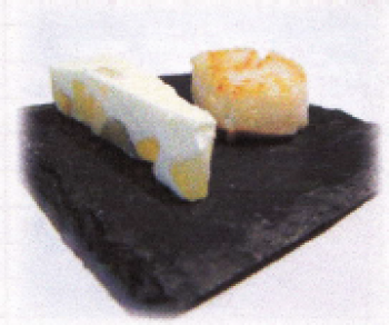 Panacotta de poires, noix de St Jacques snackée